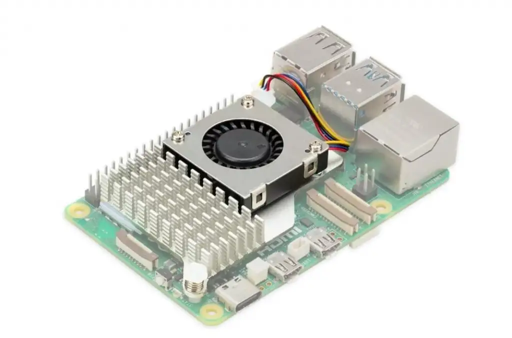 Raspberry Pi Aktif Soğutucu, Raspberry Pi 5 için özel bir klipsli soğutma çözümüdür. Bu, alüminyum bir ısı emiciyi, Raspberry Pi 5'inizi ağır yük altında bile rahat bir çalışma sıcaklığında tutmak için üç vida ile bağlanmış sıcaklık kontrollü bir üfleyici vantilatörle birleştirir.