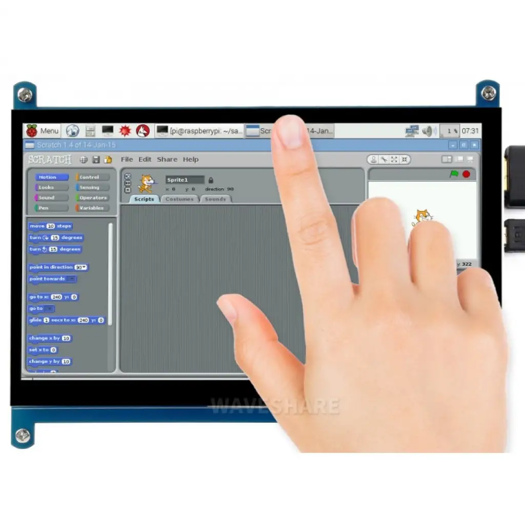 Bu 7 inçlik kapasitif dokunmatik ekran, 1024×600 çözünürlük, IPS panel ve HDMI bağlantısı ile yüksek kaliteli görseller sunar. Düşük güç tüketimi sayesinde taşınabilir projeler ve mini PC'ler için idealdir.