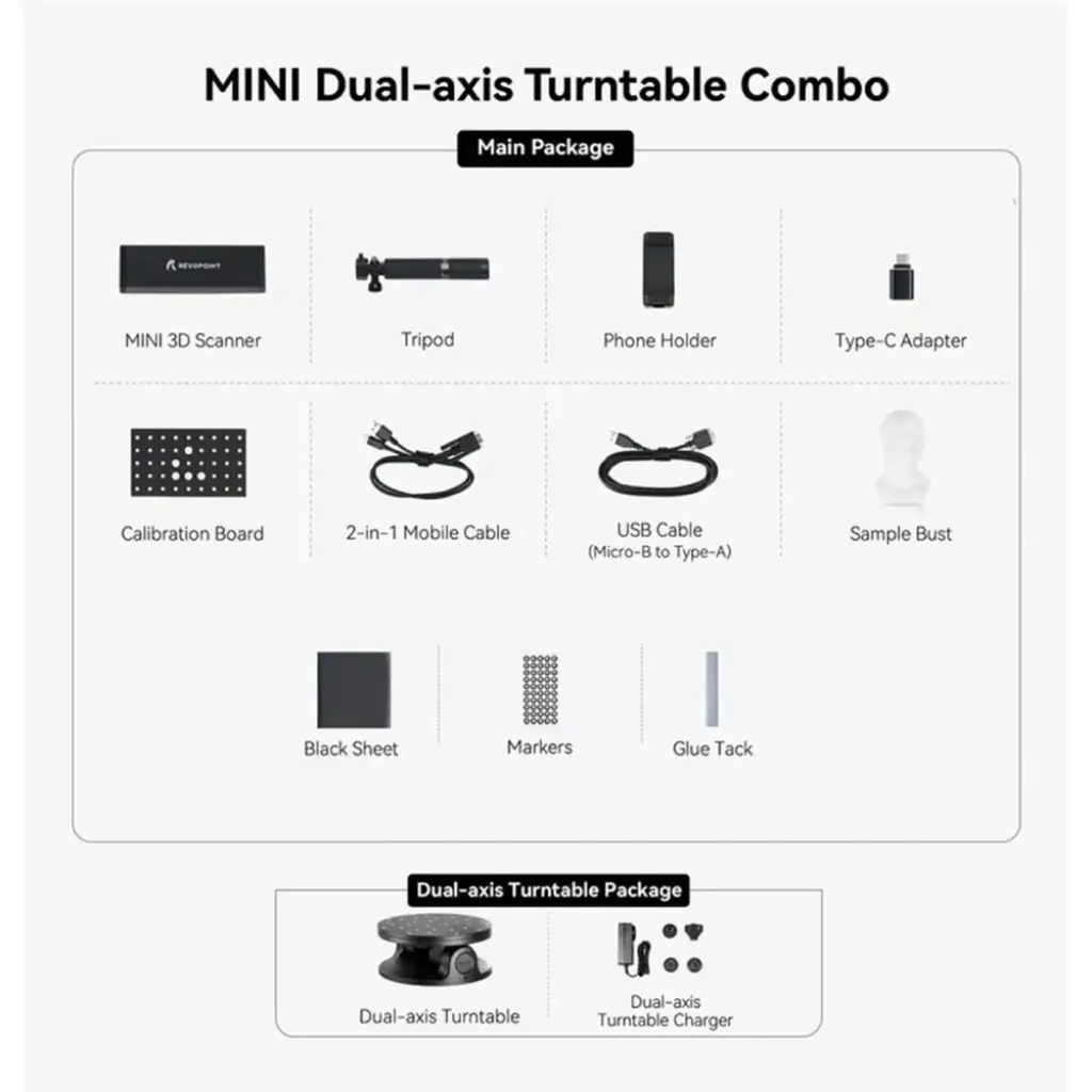 Revopoint Mini Dual-Axis Turntable Combo 3D Tarayıcı