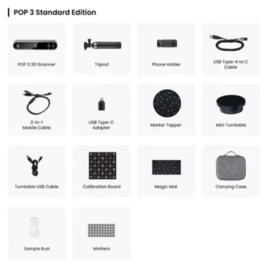 Revopoint POP 3 3D Tarayıcı (Standart Paket): Orta büyüklükteki nesneler için 0,05 mm hassasiyete sahip çok yönlü 3D scanner