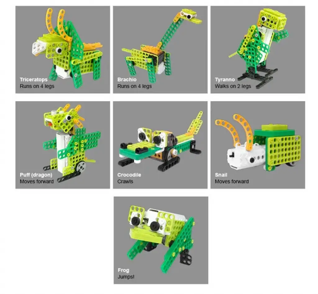 ROBOTIS PLAY farklı hayvanlara ve dinazorlara konfigüre edilebilir motorlu ve hareketli maketlerden oluşur. Bir oyun kiti içinde farklı birleştirme şekilleriyle 7 farklı maket oluşturulabilir.