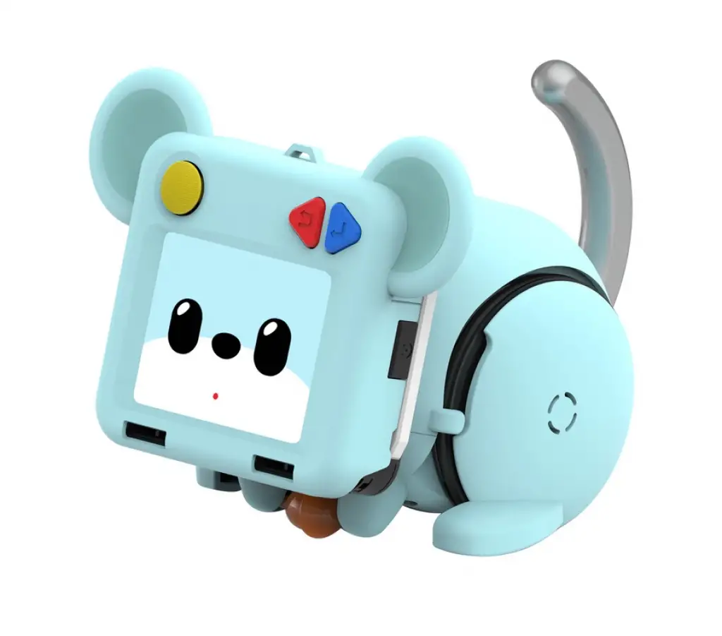 Merhaba! Benim adım robot fare R-Gee! Çocuklara yapay zeka ve programlama öğrenirken yardımcı olmak ve onları eğlendirmek için tasarlandım! Futbol oynamaya, sakladığınız yiyeceği bulmaya bayılırım. Beni akıllı telefon üzerinden kontrol edebilir ve programlayabilirsiniz. Blok programlama ile çok kolay programlanabilen bir yapıya sahibim!