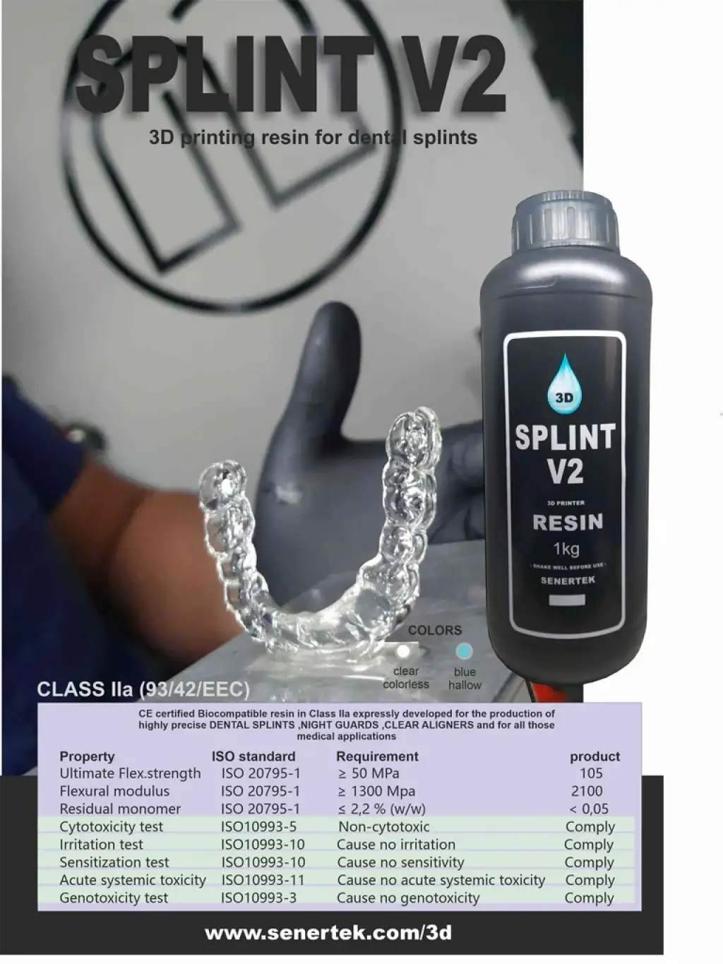 Senertek bio-uyumlu, yarı esnek, sağlam, sıfır su çekme faktörlü, gece plağı, diş sıkma ürünleri ve diş düzeltme plağı reçinesi.