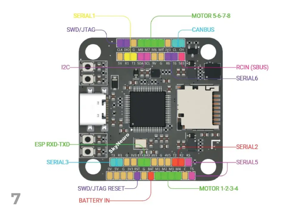 Yüksek voltaj regülasyon kapasitesi ile farklı güç sistemleriyle tam uyumluluk, çift IMU ile yedeklilik ve sensör füzyonu sayesinde doğruluk artışı, dahili Wi-Fi ve Bluetooth modülü ile iletişim özgürlüğü, CANBUS haberleşme desteği ile SkyNeuro FCU; sıradan uçuş kontrolcülerden çok daha fazlası. DJI sistemleriyle tam uyumluluğu, kablosuz yapılandırma imkanı sayesinde hem sahada hem de sistem içinde her şey elinizin altında. SkyNeuro, gelişmiş drone projeleriniz ve endüstriyel uygulamalarınız için güvenilir, güçlü ve akıllı bir çözüm sunar. Boyutundan fazlasını yapabilmesi için özel olarak sizin için üretildi. Geleceğin ihtiyaçları düşünülerek tasarlandı.