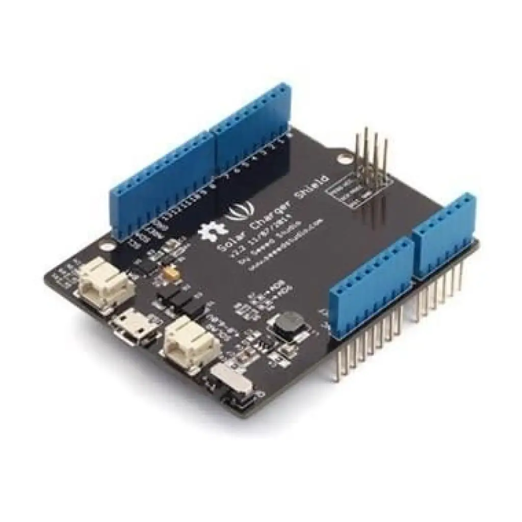 Solar Charger Shield v2.2, bir gerilim düzenleyici karttır. Görevi, güneş panellerinden gelen düzensiz gerilimi bir bataryanın şarj olabileceği gerilim seviyelerinde tutarak bataryanın şarj olmasını sağlamaktır.