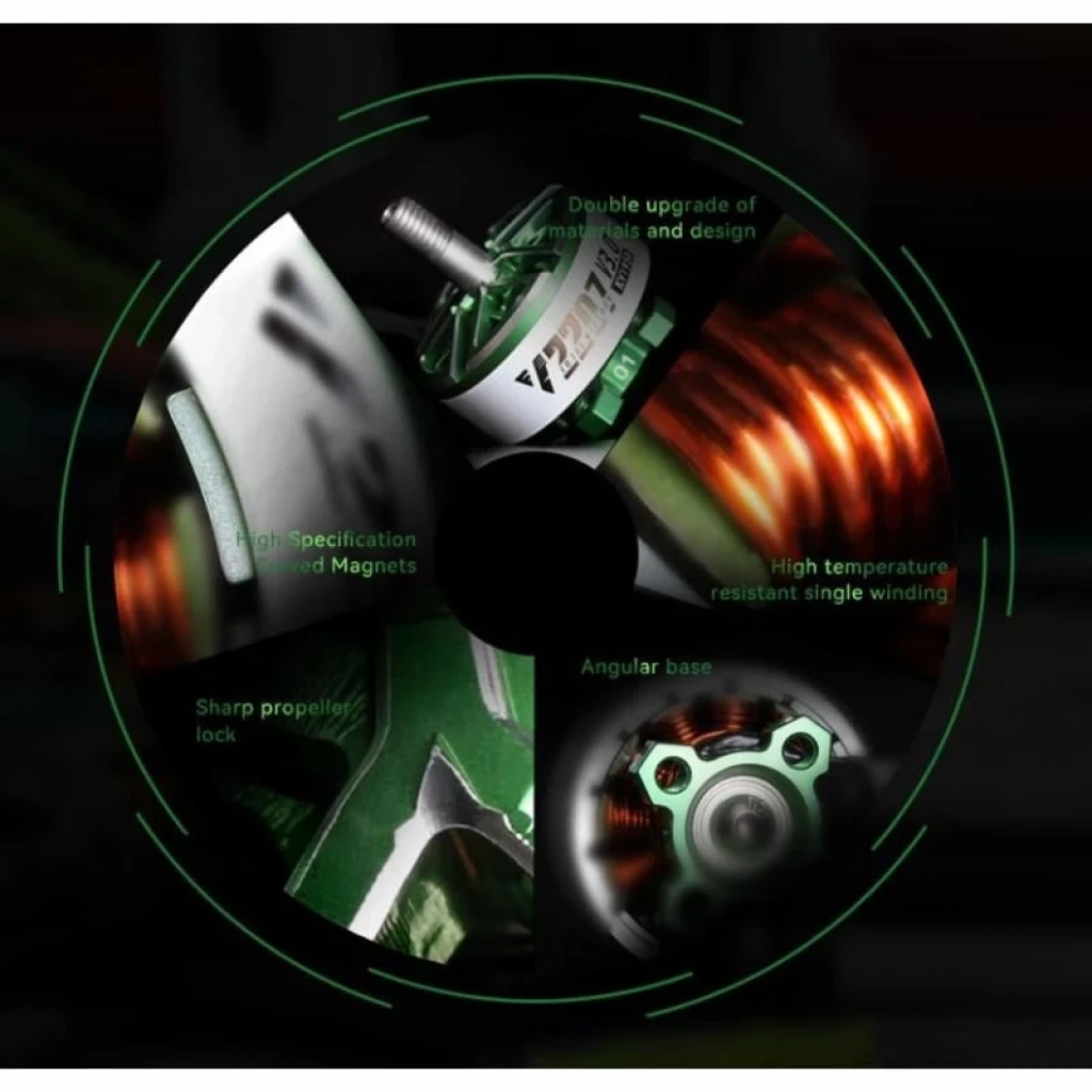 • Motor Tipi: T-Motor Velox V3, 5" çapında FPV yarış ve freestyle dronların ihtiyaçlarına yönelik, yüksek performanslı bir fırçasız (brushless) motordur.