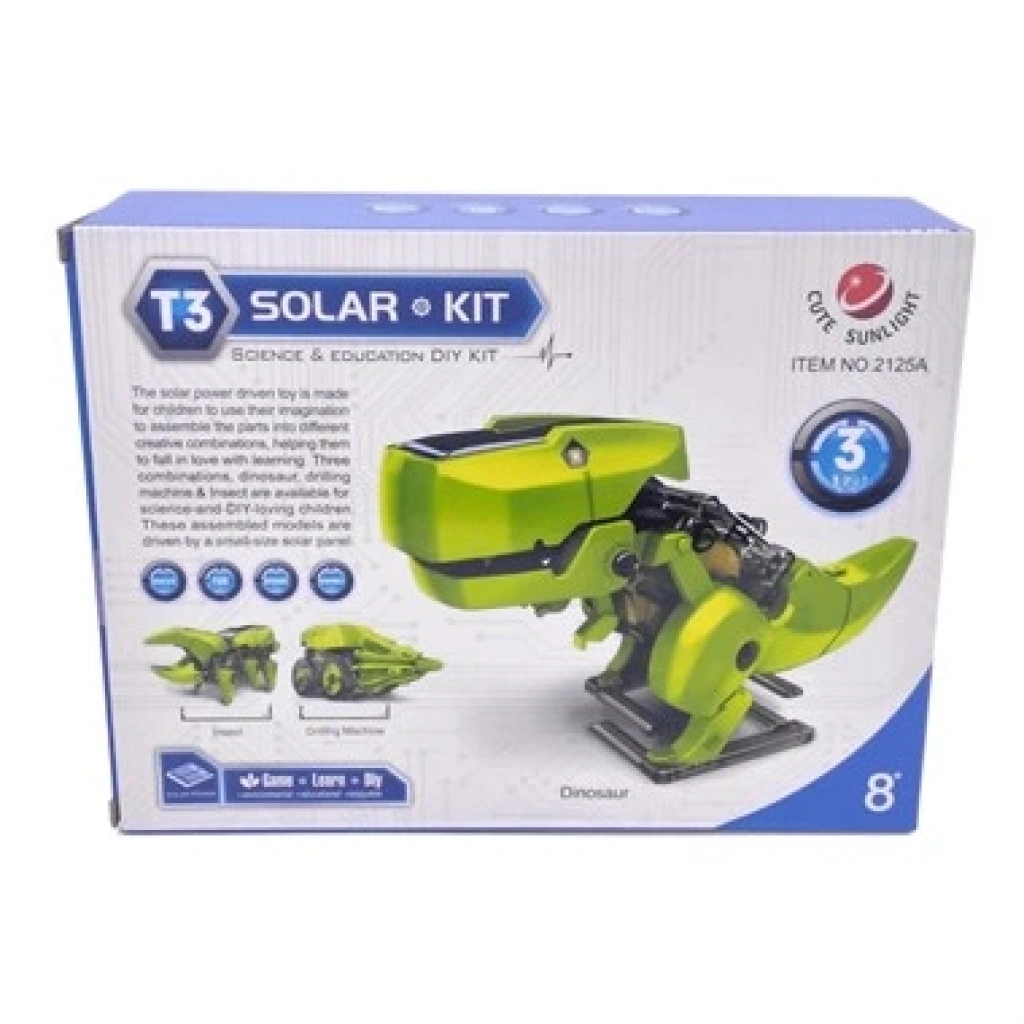 T3 Solar Robot Kiti Sadece Güneş Enerjisinden Yaralanarak Çalışmaktadır. Güneş Enerjisi ile Çalışan Robot Çocuklarınıza, Yenilebilir Enerji Kaynağı Olan Güneş Enerjisinden Enerji Üretmeyi Kavratır.