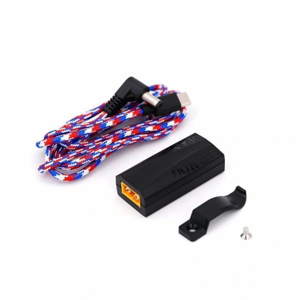 Syk Dongle'ı tanıtıyoruz – gözlüklerine hızlı ve kolay güç bağlantısı ve günlük şarj yetenekleri arayan FPV meraklıları için akıllı bir çözüm. Syk Dongle, yeni nesil HD gözlükler ve teknoloji aletleri için tasarlanmış bir XT60 - USB-C adaptörüdür. Birlikte verilen örgülü USB-C kablosuyla eşleştirildiğinde, dongle herhangi bir modern FPV gözlüğüne güç verebilecek sabitlenmiş 8,4 V çıkış verir.