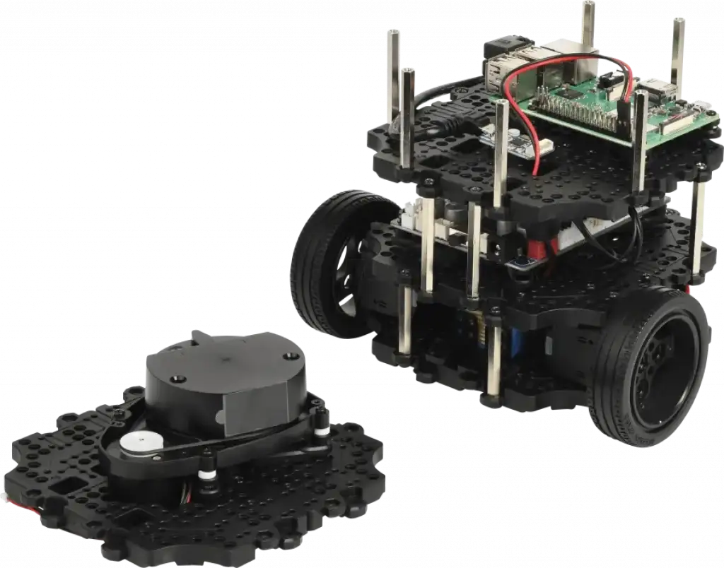 o En üst katmanda, TurtleBot3 Burger'in 360 derecelik lidarı (LDS-02) bulunmaktadır.