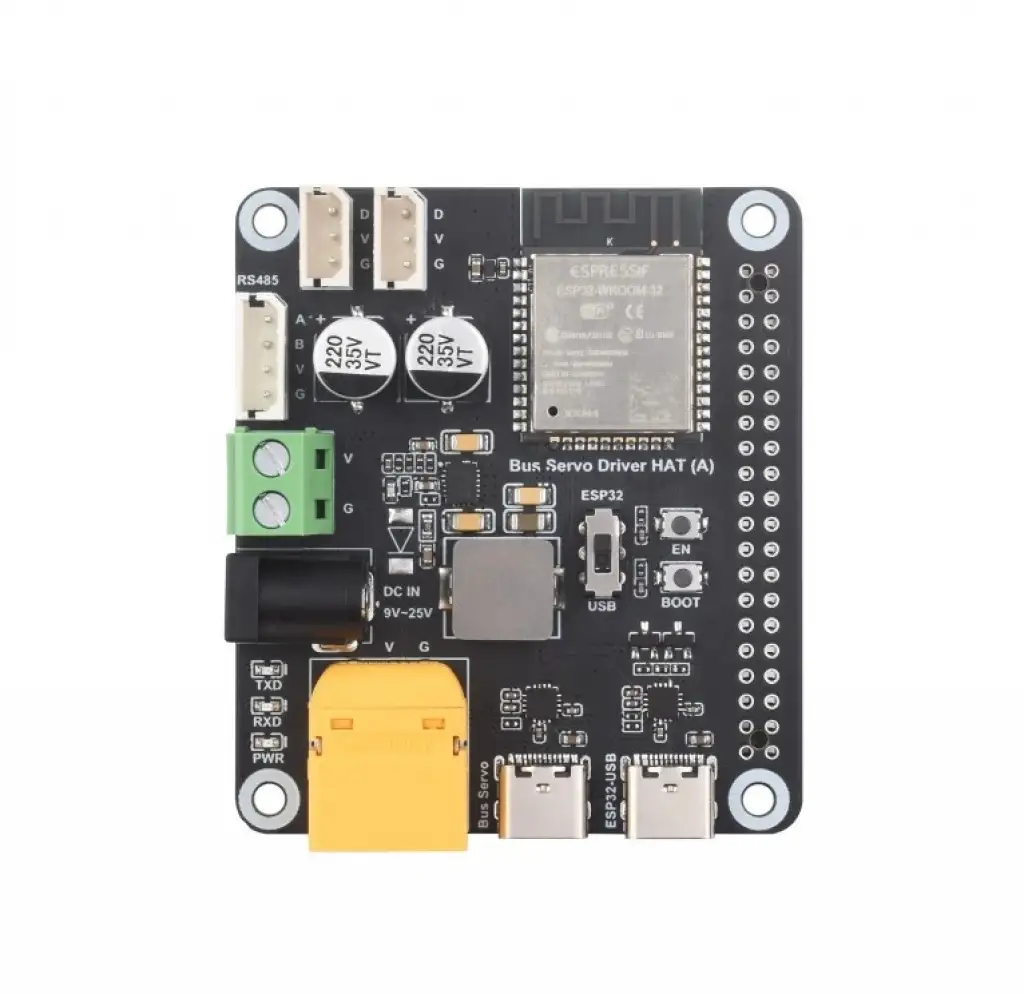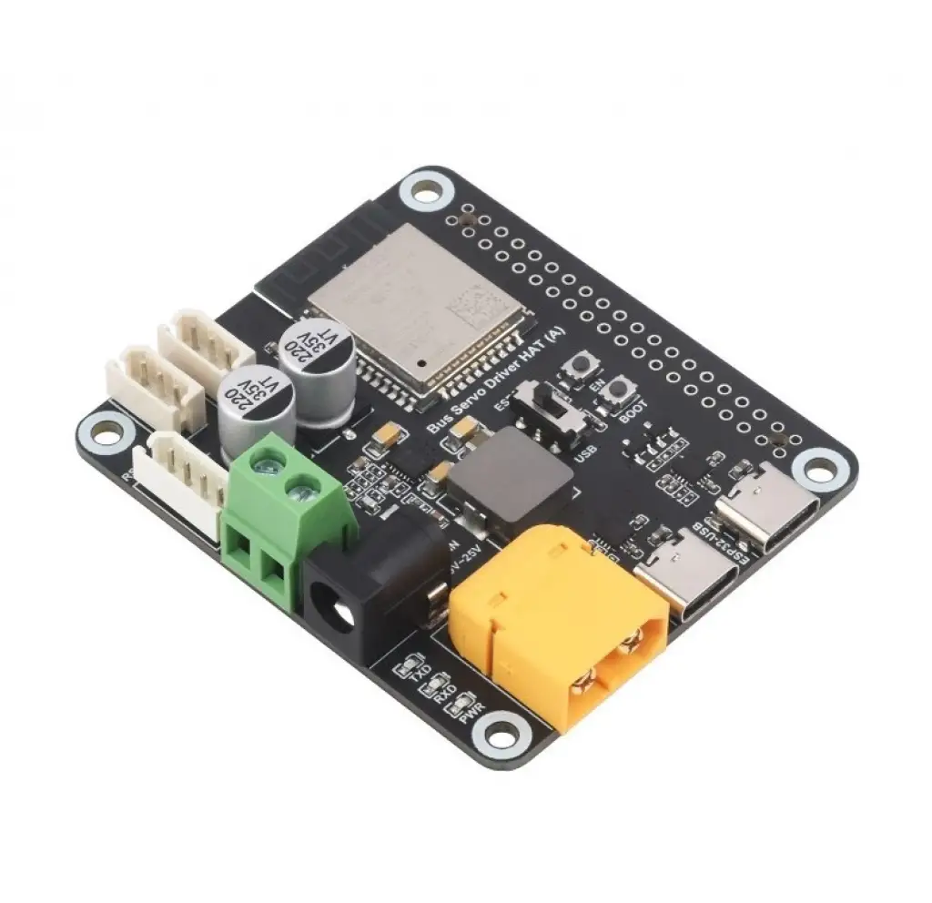 Waveshare Bus Servo Driver HAT (A), seri haberleşmeli (bus) servo motorların hassas, senkron ve verimli şekilde kontrol edilebilmesi için geliştirilmiş profesyonel bir sürücü kartıdır. Üzerinde yer alan güçlü ESP32 mikrodenetleyici sayesinde hem bağımsız bir kontrol sistemi olarak çalışabilir hem de Raspberry Pi gibi platformlarla entegre edilerek gelişmiş robotik uygulamalarda kullanılabilir.