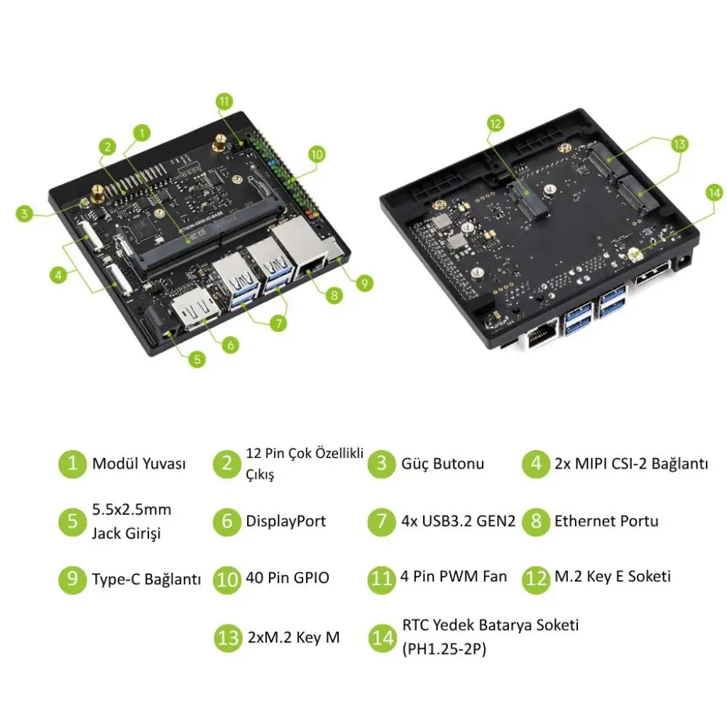 Geliştirici Dostu: Zengin bağlantı seçenekleri ve geniş GPIO başlığı ile prototipleme ve geliştirme süreçlerini kolaylaştırır.