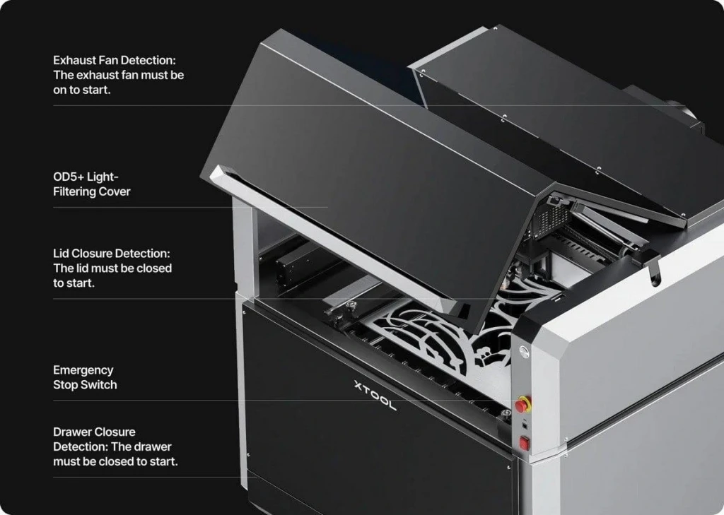 xTool Metalfab, CE, FCC ve FDA sertifikalıdır ve sıkı güvenlik ve kalite standartlarını karşılar. 10 gelişmiş güvenlik korumasıyla donatılmış olan xTool Metalfab, kaynak işlerinizin maksimum güvenlikle gerçekleştirilmesini sağlar.