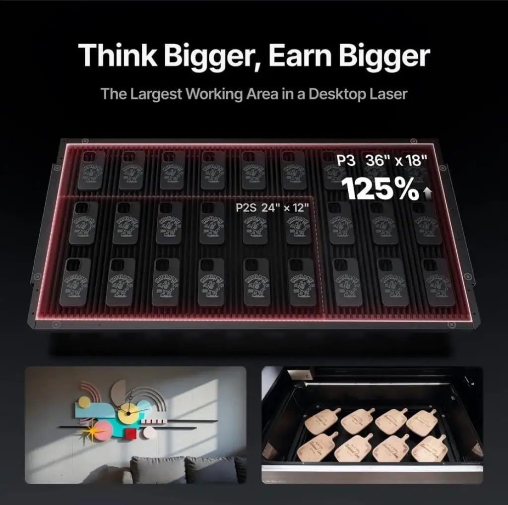 20 mm kalınlığındaki ahşaptan 25 mm akriliğe ve ince kumaşlara kadar, xTool P3 hepsini işler ve kazır !